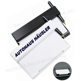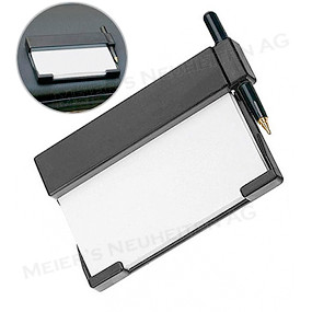 Notizblock mit Kugelschreiber und Selbstklebestreifen auf der Rückseite