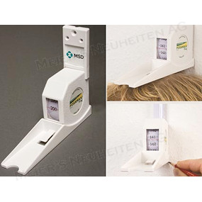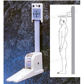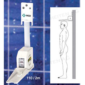 Spezialbandmass zur Ermittlung der Körpergrösse. Das Bandmass wird mit beiliegenden Schrauben an der Wand in einer Höhe von 2m befestigt.