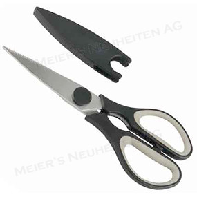 Bemerkungen: Diese schwarz/graue Allzweck-Schere ist ein echter Klassiker. Schönes Design, kompakt, handlich und kraftvoll. Kombiniert mit Nussknacker und einem Klingenschutz. Für Küche und Haushalt genau so ideal wie fürs Büro.