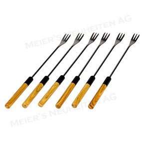 Käsefondü Gabeln Holzoptik Set (6 Gabeln) mit eckigen oder runden Griff