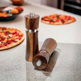 Salz- Pfeffermühle Set aus Akazienholz mit einem Carbon Mahlwerk. Für Salz und Pfeffer aber auch für viele andere Gewürze verwendbar. Links- oder rechts herumgedreht und schon würzen Sie Ihre Gerichte mit Salz respektive Pfeffer. Die Mühle wird ohne Peffer und Salz geliefert. Auf Wunsch können wir Ihnen die Mühle auch mit Salz und Pfeffer gefüllt liefern! |