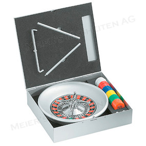 Roulette in schwarzer Tasche, die geöffnet als Spielfeld dient