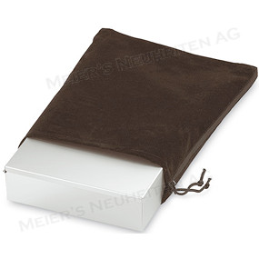 Roulette-Set in Aluminiumschachtel in einer schwarzer Tasche, die bei geöffnetem Reissverschluss als Spielfeld dient.