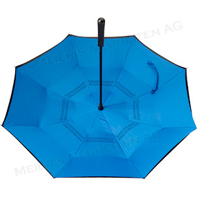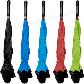 Der Schirm hält Nässe im Inneren und verhindert ungewolltes Tropfen, durch das stehen auf den Speichen trocknet der Schirm selbstständig. Mittels eines raffinierten Schiebemechanismus wird die äussere Seite nach innen eingeklappt was zur Folge hat, dass die aufgenommene Nässe sicher im Inneren des Regenschirmes eingeschlossen bleibt. Windproof-System für eine maximale Gestell-Flexibilität bei stärkeren Windböen!