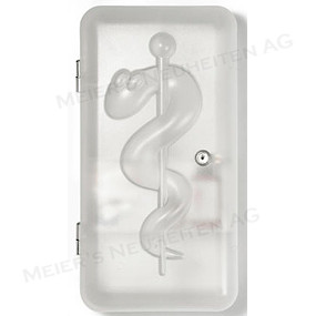 Selbstverständlich ist dieser Erste-Hilfe-Schrank gegen den Zugriff neugieriger Nachwuchs-Chirurgen sicher abschliessbar. Im Inneren bietet er eine praxisgerechte Aufteilung für kleinteiliges Verbandmaterial aber auch für höhere Gegenstände wie Hustensaftflaschen oder Salbentuben.